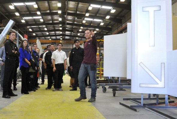 Students for SECTA listen to a presentation from YESCO exterior shop foreman Kyle Rimoldi as part of the FutuReady program, Oct. 26 Photo by Buford Davis | Business Press
