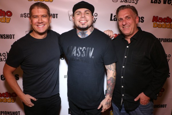 President and Managing Partner of Nacho Daddy Paul Hymas, DJ Stellar and Mark Evensvold pose for a photo at the company’s first Strip restaurant. (Courtesy of Nacho Daddy)
