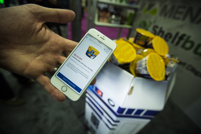 At GlobalShop, when Will Phillips, director of retail insights for Menasha, held his smartphone up to a cardboard barrel filled with microwavable cups of Kraft macaroni and cheese, a 50-cents-off coupon appeared on his screen.