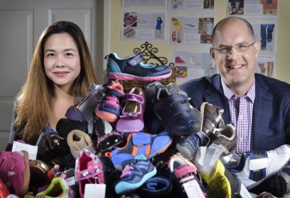 Angela Edgeworth, founder and president of Pediped Footwear, and Rudy Glocker, managing partner, are shown at company headquarters at 1191 Center Point Drive in Henderson on Thursday, Oct. 8, 2015 …